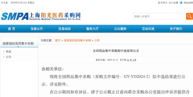 国家组织药品联合采购办公室正式发布《全国药品集中采购拟中选结果》。