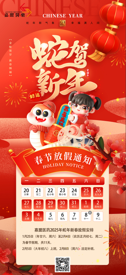 2025年嘉盟医药春节放假通知
