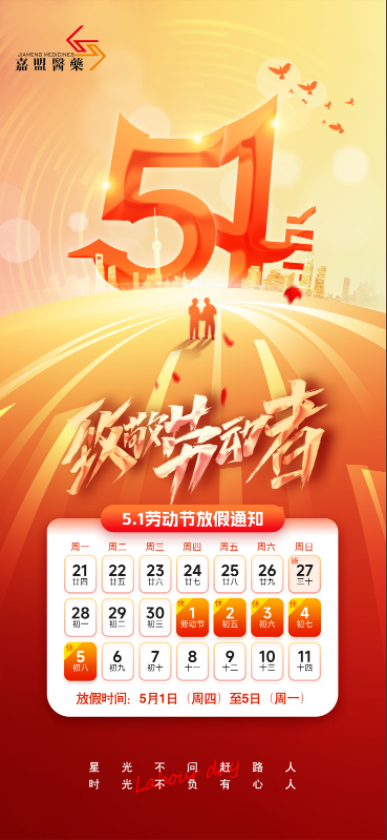 嘉盟医药 | 2025年五一劳动节放假通知-凯发官网入口首页
