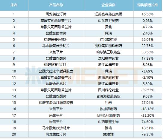 01、抗抑郁药“一哥”易主 top20洗牌